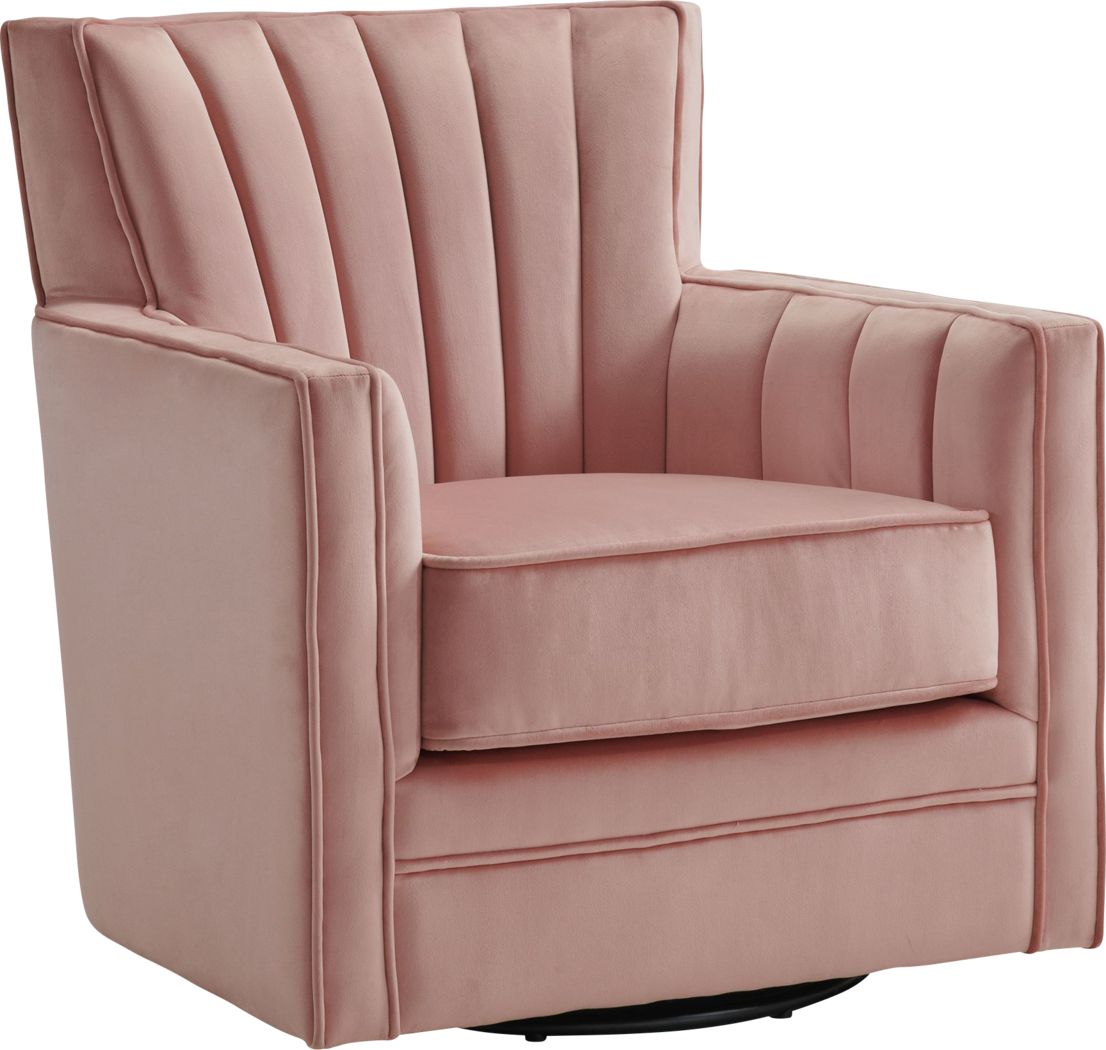Elements Tracy Glam Swivel Accent Chair With Button Tufting Royal Furniture Upholstered Chairs from images.furnituredealer.net The chair has a lower back, a sturdy wooden frame, and faux leather upholstery that will last for a long time. Its roomy design, plush cushions and pillows ensure comfort while soft velvet upholstery satisfies your textural senses, and a gold metal swivel base adds elegance while enabling you to turn freely while you sit and read. Cambridge light pink velvet accent chair. Ava pink velour w/ gold base swivel accent chairby best master furniture(1). Cozy up spaces while giving it an instant refresh. Get a little more pretty in pink. $11/month with 60 months financing*. Yaheetech velvet club chair accent arm chair upholstered barrel chair with armrest for living room bedroom navy blue.